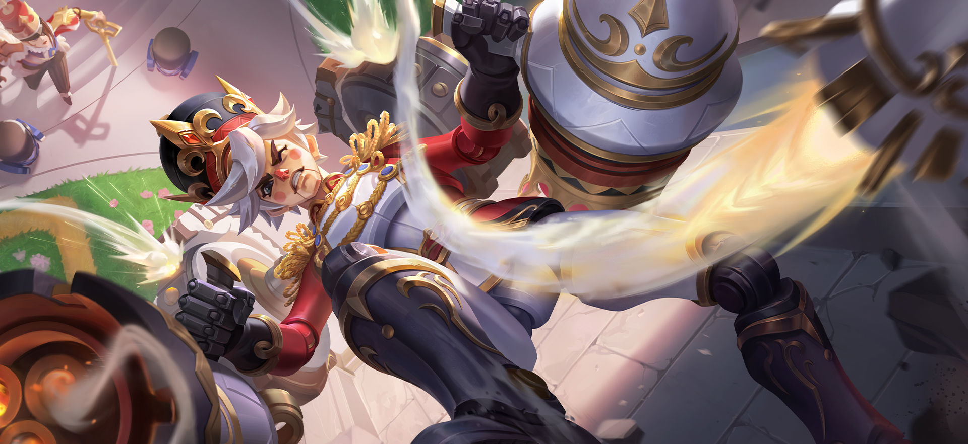 皮肤故事强大的异想国执政官,偶然间在远方发现了梦幻般的“蔚蓝仙境”。好奇的她派出了口齿不清的侦查队伍,却被仙境守将误以为是场入侵,双方的争斗一触即发。紧要关头,一位仙境勇者只身闯入敌后,瞄准了他们的弱。