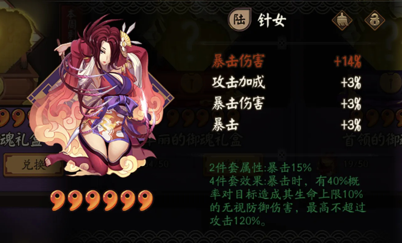 《阴阳师》中的御魂针女在开服初极为强势,即使后面有了削弱依然是多段伤害式神的首选御魂。因为出场高所以也诞生了很多梗,下面就一起来看看吧。改动针女在开服初期极为强势,触发概率为50%,风头盖过了其他增伤。