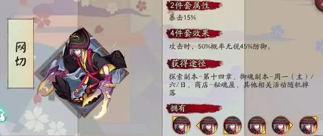 《阴阳师》中的御魂网切是暴击加成类御魂,对于御魂网切的属性和四件套可能触发的效果还有玩家不太了解,下面就一起来看看御魂网切的属性和四件套效果以及网切适合搭配的式神。属性效果2件套属性:暴击15%&nb。