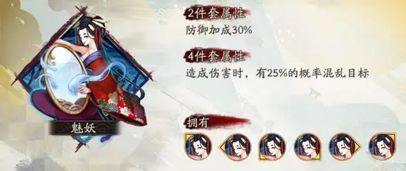 御魂魅妖是《阴阳师》中的防御加成类御魂,魅妖,美艳的女妖怪,以迷惑人心为长。御魂魅妖两件套与四件套属性不同,式神选择不同的御魂搭配,来获得不同的特殊效果。大江山之友某些式神大江山三兄弟其实自己并不适合。