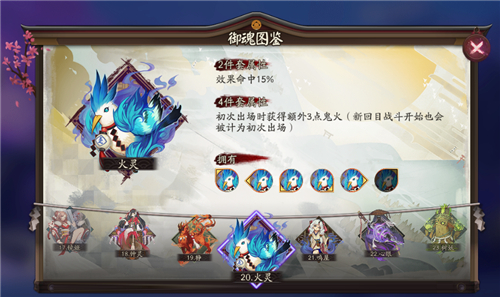 御魂火灵是《阴阳师》中的效果命中加成类御魂,队伍里如果有两个及以上的火灵,则只触发其中一个。火灵,在汉语古语中指汉朝。唯一效果虽然效果未写明但火灵是唯一效果,即队伍里如果有两个或以上的火灵,则只触发其。