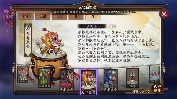 阴阳师天邪鬼黄角色背景是什么?阴阳师,跨越次元,以一纸符咒连通阴阳。万物皆可化灵,与众多妖怪式神缔结契约,守护两界羁绊,在彼世与式神一起战斗。以下为大家分享天邪鬼黄传记介绍。天邪鬼黄传记一我最喜欢鼓了。