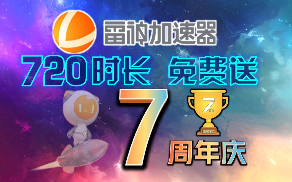 《雷神加速器》7周年庆720小时兑换码