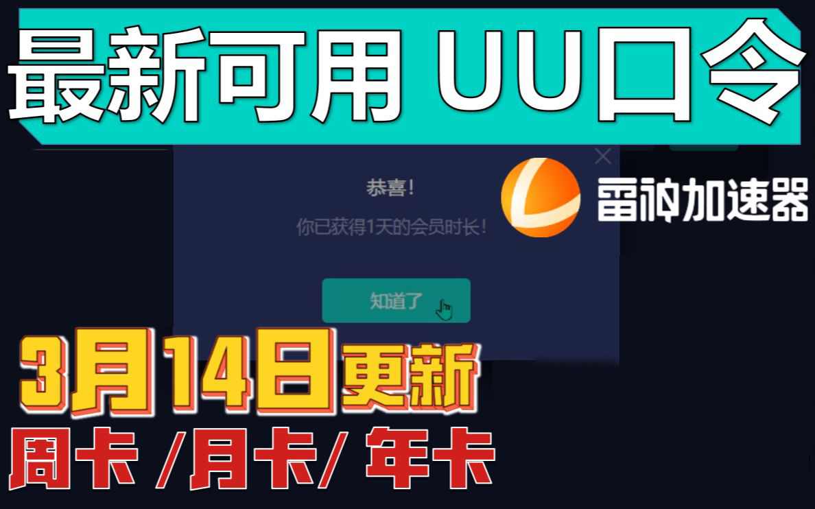 《雷神加速器》3月14日最新兑换码
