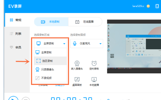 《EV录屏》如何调整选区分辨率