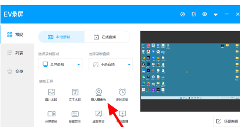 很多用户在使用EV录屏应用的时候不知道怎么同时录屏和自己本人,为此下面小编就给大家带来了EV录屏录屏同时录人像方法。 EV录屏录屏同时录人像方法:1、进入应用后点击辅助工具下的嵌入摄像头功能。