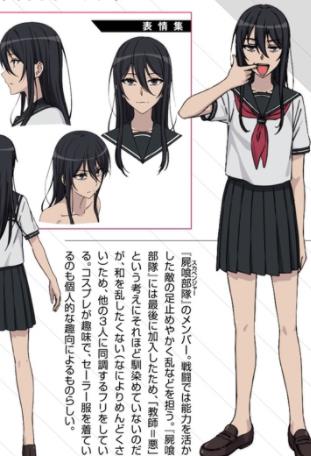 药丸医月(薬丸 医月(やくまる いつき),Yakumaru Itsuki,声:西田望见) 食尸部队的成员,昵称药丸(薬丸(やくまる),Yakumaru)。能力为等级不明的液比转换,能够操纵比重、分离液体