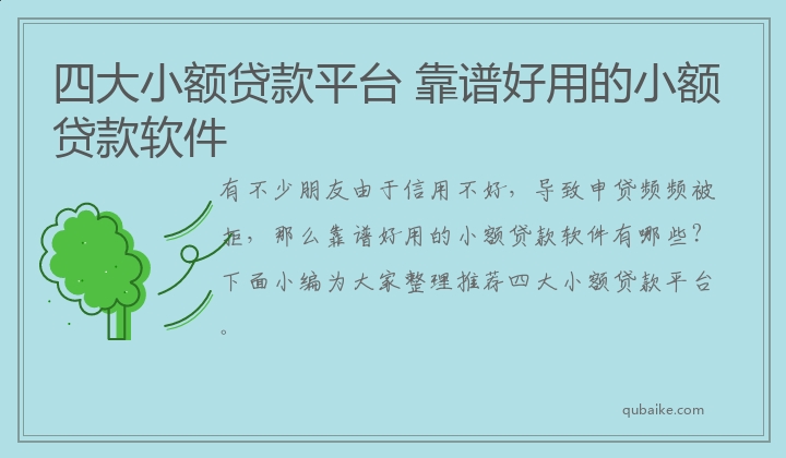 有不少朋友由于信用不好,导致申贷频频被拒,那么靠谱好用的小额贷款软件有哪些?下面小编为大家整理推荐四大小额贷款平台。
