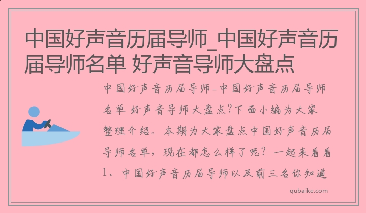 中国好声音历届导师_中国好声音历届导师名单 好声音导师大盘点?下面小编为大家整理介绍。本期为大家盘点中国好声音历届导师名单,现在都怎么样了呢?一起来看看1、中国好声音历届导师以及前三名你知道都是谁吗?2