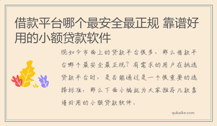现如今市面上的贷款平台很多,那么借款平台哪个最安全最正规?有需求的用户在挑选贷款平台时,是否能通过是一个很重要的选择标准,那么下面小编就为大家推荐几款靠谱好用的小额贷款软件。