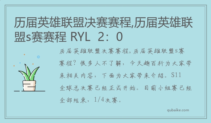 历届英雄联盟决赛赛程,历届英雄联盟s赛赛程?很多人不了解,今天趣百科为大家带来相关内容,下面为大家带来介绍。S11全球总决赛已经正式开始。目前小组赛已经全部结束,1/4决赛。