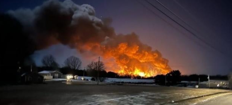 据美国有线电视新网在2月4日报道,当地事件的2月3日晚,美国俄亥俄州的一列火车因脱轨引起了火灾,现场火势很大,浓烟四起,大量的浓烟冒出瞬时吞没了火焰,随后当地官员迅速向附近的居民发布了疏散和就地避难的命