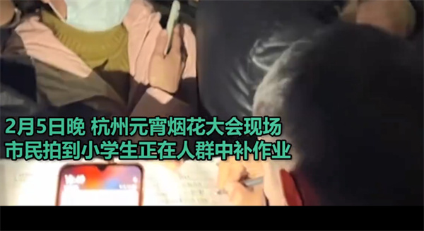 寒假余额不足 杭州烟花秀现场学生疯狂补寒假作业
