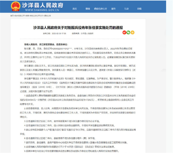 2月8日湖南省沙洋县政府对于00后张某某拒服兵役后的9项处罚坐车了通报,不得不说这对于张某某来说是咎由自取,参军绝非儿戏,青春落子无悔。