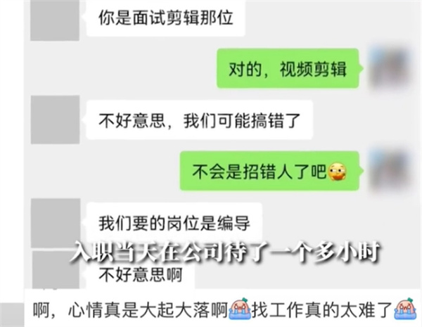 入职1小时被HR告知招错人补偿50元 心情复杂难受