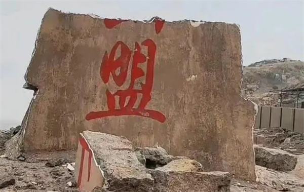 根据网络上视频,可看到在浙江舟山有一块写着海誓山盟的石碑,出现碎裂散落在地上。