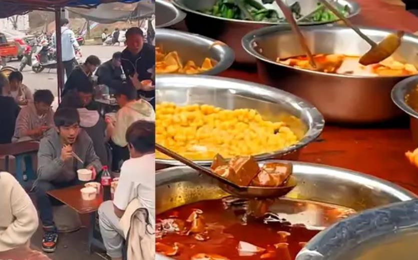 工地食堂因饭菜实惠成大学生打卡点 可以随便打菜