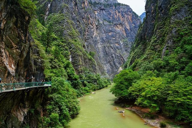 徒步2.5公里的木质观光栈道,可以欣赏到岗曲河两岸的水光山色,木栈道的尽头就是