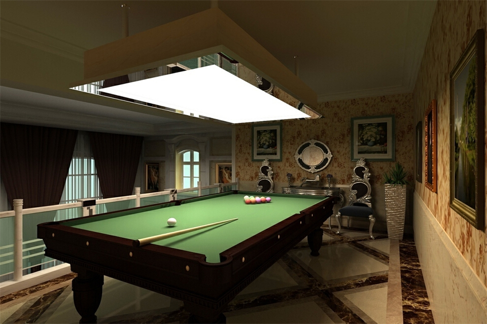 为了打球舒适感好一点,室内放台球桌一个至少需要5.8m×4.5的一个空间。