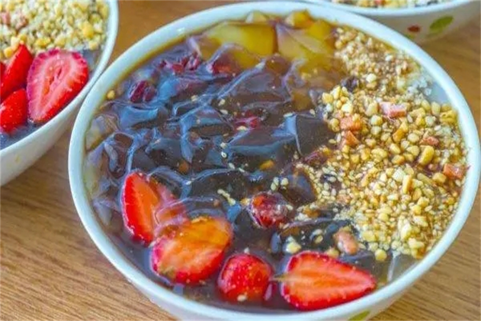 冰粉粉做成的冰粉,在口感方面与手搓冰粉有一定的差别,手搓冰粉是用纱布包着冰粉籽在水里搓出来的,口感Q弹,吃起来嫩一一些, 香味也更浓;冰粉粉香味清淡,质感更硬,像布丁一-样需要用勺子划开。不过整体来说,冰粉粉做成的冰粉也是比较好吃的,而且做起来很方便。