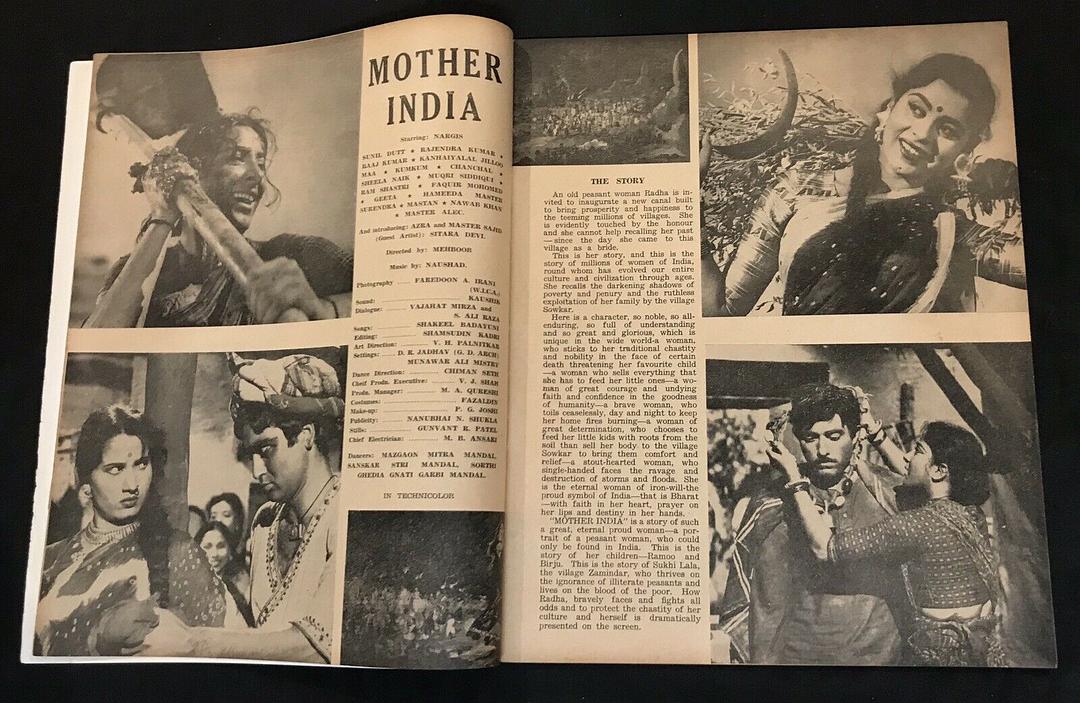 这部电影从完成一条以现在为背景的村庄的水渠开始。拉达(Nargis)作为村里的母亲,被要求打开运河,回忆起她新婚时的往事,反映了印度新的独立。拉达和沙姆(Raaj Kumar)的婚礼是由拉达的婆婆支付的,她从放债人Sukhilala那里得到了一笔贷款。这件事开始了拉达所忍受的贫穷和苦难的螺旋式上升。贷款的条件有争议,但村里的长老们决定支持放债人,之后沙姆和拉达被迫支付四分之三的庄稼作为贷款500卢比的利息。在试图利用更多的土地来减轻贫困的同时,沙木的手臂被一块巨石压碎。他为自己的无助感到羞耻,也为村里的其他人感到羞耻。他觉得自己对家人没用,就离开了,再也不回来了。不久之后,拉达的婆婆去世了。拉达继续着……