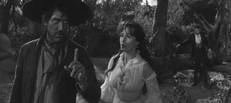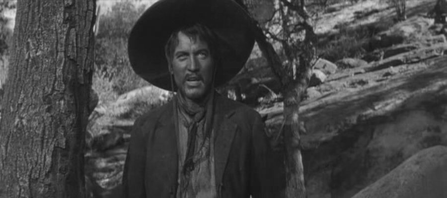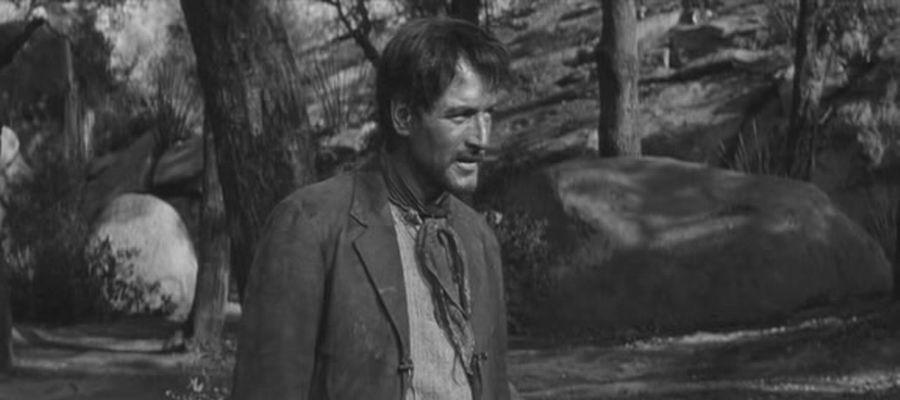 19世纪末,传教士、探矿家和骗子在美国西部一个偏僻的小火车站等车。闲谈中他们讲起了最近发生的一桩著名的杀人案。声名狼藉的匪徒绢·卡拉斯被法庭宣判处以绞刑,因为他强奸了一名上校的妻子,还杀死了上校。这个案件扑朔迷离,当事人的说法都各不相同。卡拉斯的说法是:他先将上校绑了起来,然后把他的妻子强奸了,在最后的决斗中,他把上校杀了。而上校的妻子则是另一种说法:她说上校死在她的手上。法医的鉴定是:上校死于自杀。真实的情况究竟怎样?惟一的知情者探矿家目睹了事情发生的全过程,实际情况是:上校的妻子向卡拉斯卖弄风情,促使上校和卡拉斯展开决斗,而在决斗中,上校死在了自己的剑下。那把惟一可以作为物证的剑也被探矿家拿走。