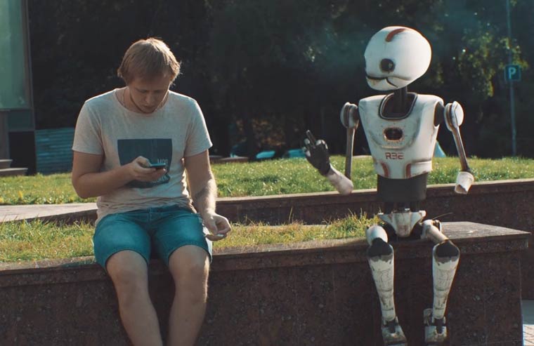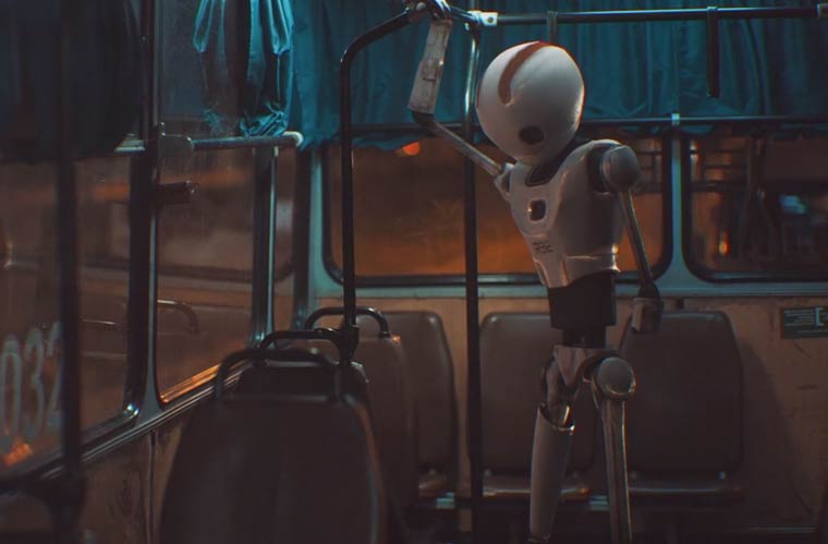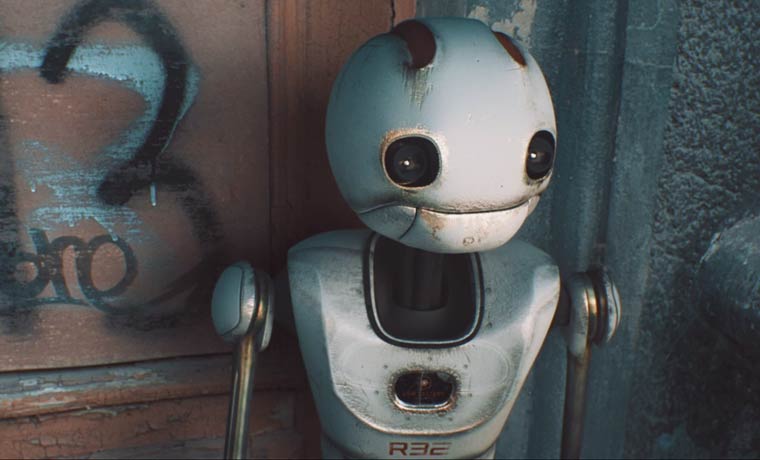 大都会的中央,行走着一台有些破旧的机器人R32。虽然他面无表情,但是举止中充满着无助和绝望。R32曾经是十分先进的机器人,也得到人类的信赖,不过科技更新换代十分迅速,很快性能更加出众的R64开发出来并投入市场,这台R32失去了一只手臂,体内的电量也降到前所未有的低点。他希望谁能帮帮他,哪怕帮他换换电池也好。无奈周围的人都如此冷漠,没人会关心一台机器人的生死。