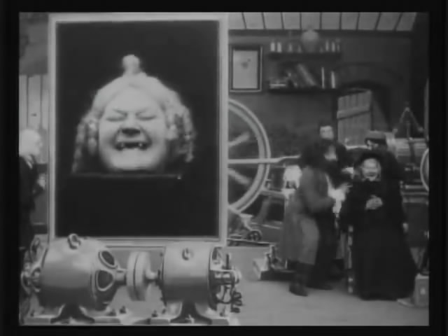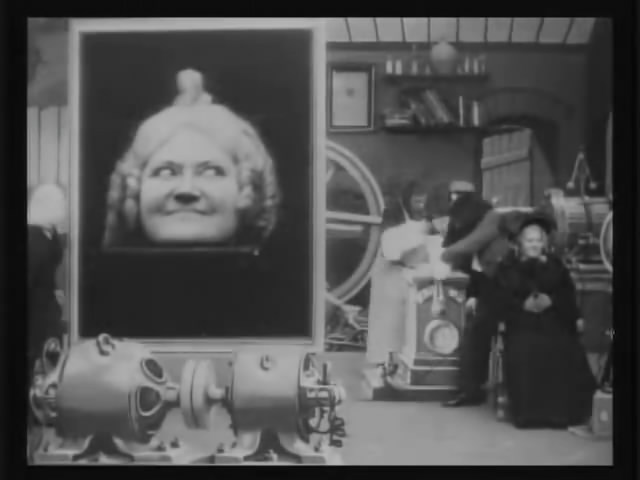一对老夫妇将信将疑,希望一探究竟。科学家先将一幅画映射出来,接着请出女助手占到摄像头前。大屏幕立刻出现女子的形象,并频频对老头子搔首弄姿。接着老太太也跃跃欲试,得到了莫大的快乐。跟着老头也坐到摄像头前,大屏幕上却出现了一张猴子的面孔。老头大为光火,打翻幕布,大闹实验室。科学家和他的助手们则笑得直不起腰来……