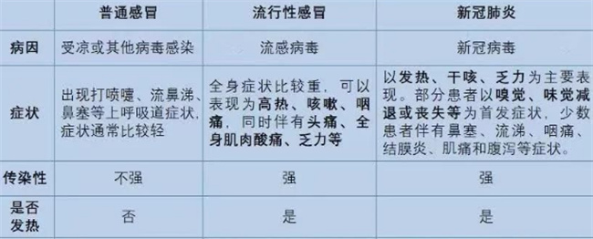 感冒与新型冠状流感的区别