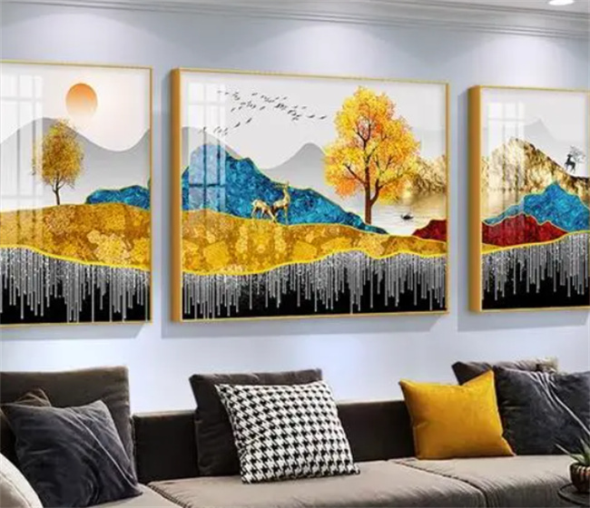 不过有部分小伙伴都没有选择这三种画,他们直接在客厅沙发背景墙上面挂了一幅八骏图、高山流水图等等,这些其实也会有好的寓意,也有部分小伙伴直接在客厅沙发背景墙上挂了山水日升图,代表如日中天的意思,其实大家可以根据自己的心意选择挂什么画比较好,针对挂画方面没有太大的养讲究,只要自己喜欢就可以,另外在选择挂画的时候也需要跟室内的装修搭配合理,要是跟室内的装修搭配不太合理的话,大家在选择挂画时还是需要慎重的。