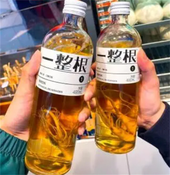 一整根熬夜水里面有人参,人们将一整根熬夜水喝完,不会出现失眠的情况,部分患者熬夜以后精神状态不佳,利用一整根熬夜水来提神。要说一整根熬夜水的特色是一整根人参,人参的个体虽然比较小,有淡淡的人参味,但是它的价格却特别的低廉,一般一杯奶茶的价格。一整根人参水喝完以后可以重复泡水,味道特别淡,也可以将人参拿出来当零食咀嚼。