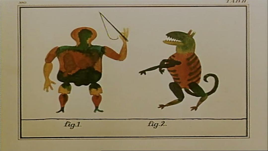 1)一名男子站在两把并排而置的椅子旁,正在练习飞翔。从最初的空手跳跃,到接下来三步不同大小翅膀的助力,再回归最初的状态,如是往复。2)一个男人手执皮鞭站在左边,右边蹲坐着一条温良的狗。随着皮鞭的起落,小狗作出各种各样的动作,而在这一过程中,人与狗的主仆位置似乎也在发生着转变。忽左忽右,不便的只有起起落落的鞭子。3)仿佛承载着历史的人,手里拿着一支铅笔,他凭空绘出房子的模样,谁知却无法走进去。于是只好涂掉笔迹,重新画起,将自己圈入房子。当想出去的时候,又无法摆脱线条的束缚。只能涂掉线条,又是一次周而复始……