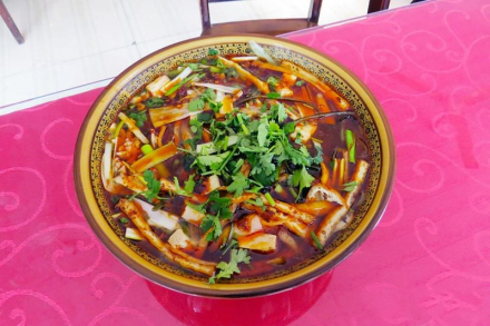 | 麻食菜 麻食菜是华阴的地方风味小吃,其受欢迎程度可以与羊肉泡馍相媲美。据了解,麻食菜因其主料粉条像麻绳,又属食材,且口味带麻,故称麻食。一百年前已经在华阴流传开来。 麻食菜选料讲究,有粉条、豆腐、海带、大葱、香菜、花椒、生姜、豆瓣酱等数十种之多。制作麻食菜一般都是在店门口支起一口大锅,锅上加一横杆,将大把的粉条搭乘在上面。客人来时,店主将提前备好的配料放在一个大笊篱里,在精心熬制的浓汤里轻轻煮烫,盛碗后,加上特质的红烧肉,配上花椒、胡椒、蒜末、姜末等作料,浇上浓汤,碗面上立刻飘起一层油花,手一端碗,香气扑鼻。食客根据食量可将锅盔馍掰成块泡在碗里,那可真是让人垂涎三尺,吃起来别有一番滋味。 |