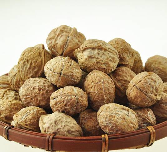 大姚核桃,云南省大姚县特产,中国国家地理标志产品。大姚核桃坚果呈倒卵圆形,缝合线隆起紧密,仁白、核仁饱满。口感好,食味香甜,涩味淡。理化指标:干果单果重≥8g,出仁率≥45%,粗脂肪含量≥65%,蛋白质