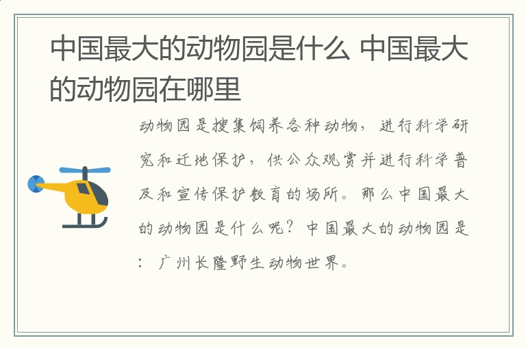 动物园是搜集饲养各种动物,进行科学研究和迁地保护,供公众观赏并进行科学普及和宣传保护教育的场所。那么中国最大的动物园是什么呢?