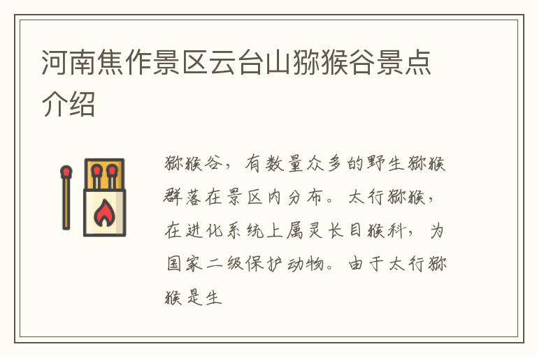 河南焦作景区云台山猕猴谷景点介绍