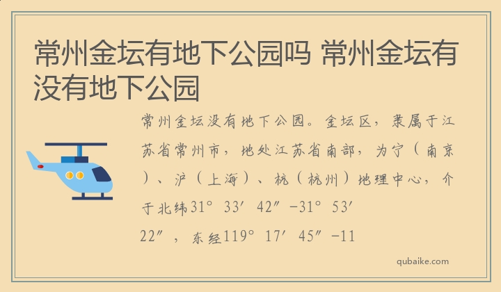 常州金坛没有地下公园。金坛区,隶属于江苏省常州市,地处江苏省南部,为宁(南京)、沪(上海)、杭(杭州)地理中心,介于北纬31°33′42″-31°53′22″,东经119°17′45″-119°44′5