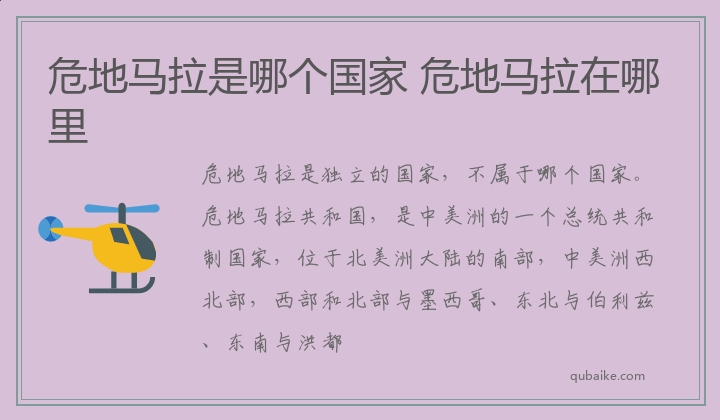 危地马拉是独立的国家,不属于哪个国家。危地马拉共和国,是中美洲的一个总统共和制国家,位于北美洲大陆的南部,中美洲西北部,西部和北部与墨西哥、东北与伯利兹、东南与洪都