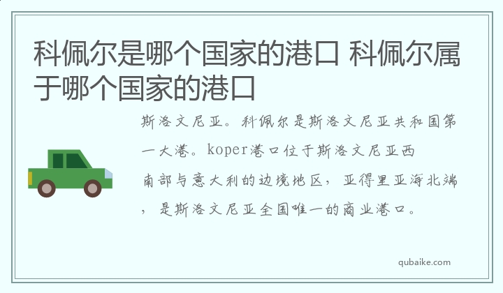 斯洛文尼亚。科佩尔是斯洛文尼亚共和国第一大港。koper港口位于斯洛文尼亚西南部与意大利的边境地区,亚得里亚海北端,是斯洛文尼亚全国唯一的商业港口。