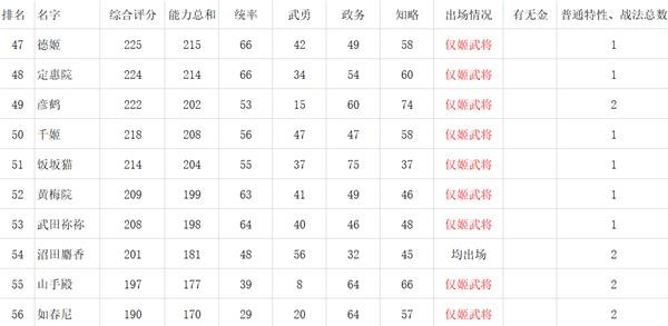 信长之野望新生中有多达几十名女性武将,她们的基础属性各有不同,以下就是信长之野望新生全女性武将数据一览感兴趣的小伙伴赶快来看看吧。信长之野望新生全女性武将数据一览排名规则:每点统率、武勇、内政、知略算。