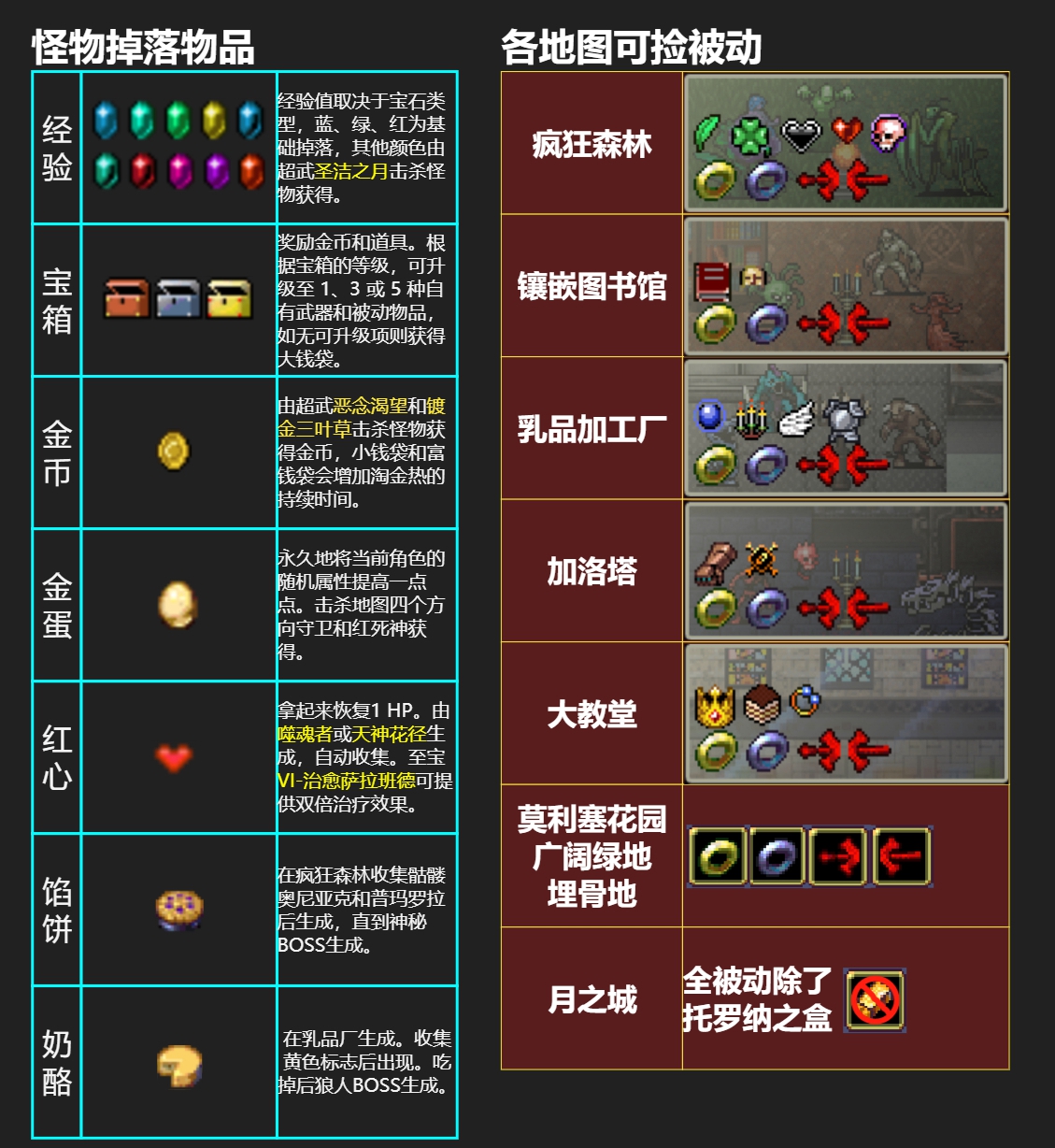 《吸血鬼幸存者》全怪物掉落及地图可捡被动一览表