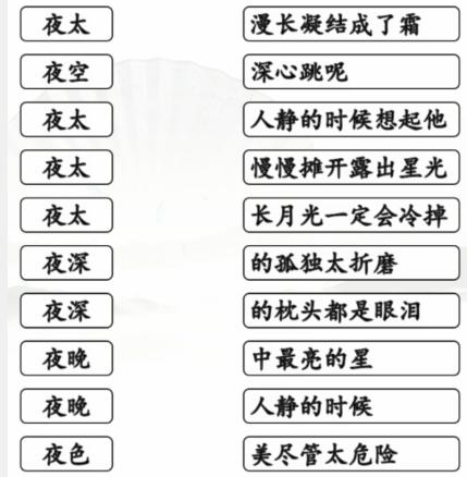 汉字找茬王连夜的歌怎么过?趣味文字解谜,深受大家喜爱的汉字找茬王总有几个关卡让你怎么都过不去,以下为大家分享汉字找茬王连线夜开头的歌详细通关流程,助你轻松过关。1、这一关都是夜开头的歌曲,我们需要根据。