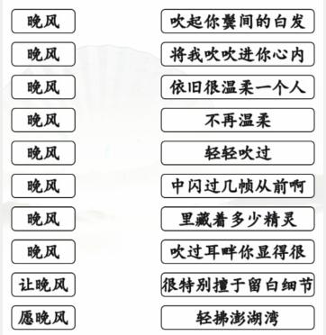 汉字找茬王晚风之歌怎么过?趣味文字解谜,深受大家喜爱的汉字找茬王总有几个关卡让你怎么都过不去,以下为大家分享汉字找茬王连出全部歌曲详细通关流程,助你轻松过关。1、这一关都是晚风开头的歌曲,没想到有这么。