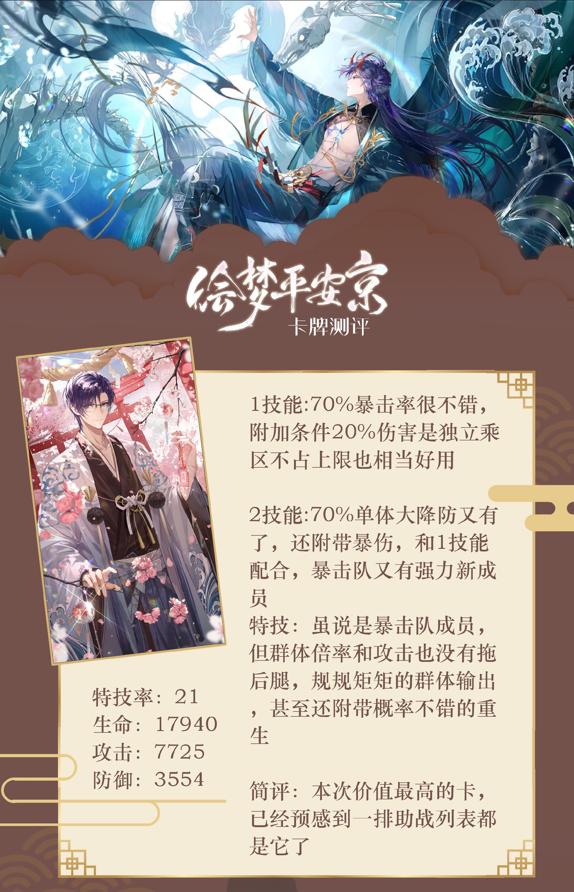 《时空中的绘旅人》「绘梦平安京」活动司岚的SSR卡怎么样?《时空中的绘旅人》「绘梦平安京」司岚SSR[苍海樱流]卡牌解析。「我听见了那句诗……以及落在樱花上的那个亲吻。」“可现在,我已经不是神明。”“。