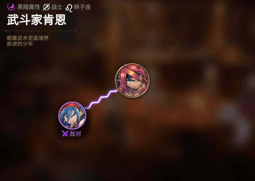 第七史诗武斗家肯恩人物关系图,第七史诗,经典RPG手游来袭,视听享受震撼高燃剧情,宏大奇幻世界等你来探索。以下为你分享第七史诗武斗家肯恩英雄关系介绍。武斗家肯恩人物关系肯恩(敌对)这世上还有一个和自己。