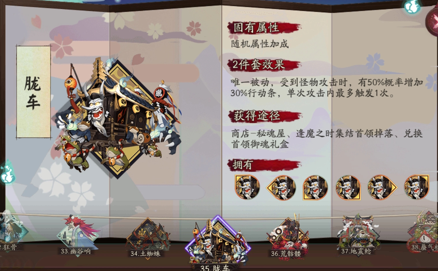 《阴阳师》御魂胧车属性介绍