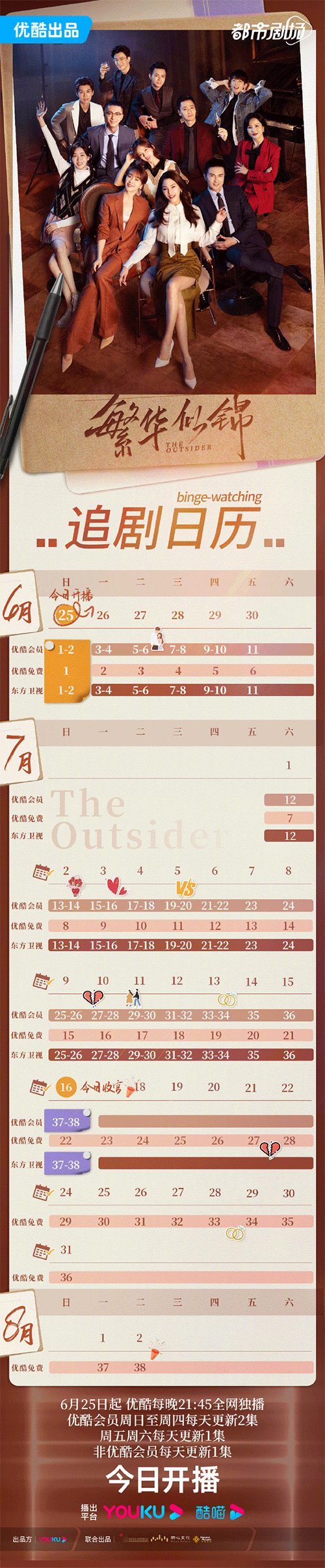 繁华似锦开播今日开播,追剧日历酷酷子速速奉上!以爱之名,误入繁华,6月25日起每晚21:45,优酷全网独播,优酷会员周日至周四每天更新2集,周五周六每天更新1集,非优酷会员每天更新1集,快来和苏沫、王。