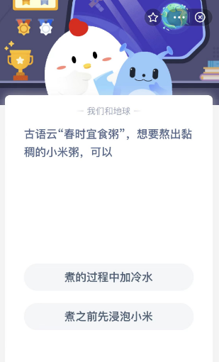 支付宝庄园小课堂2月20日的问题是,古语云“春时宜食粥”,想要熬出黏稠的小米粥,可以?你知道正确答案吗?跟着小编一起来详细了解吧。