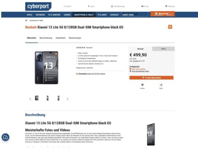小米13lite多少钱