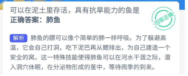 可以在泥土里存活具有抗旱能力的鱼是肺鱼还是飞鱼?蚂蚁神器海洋今日3.18最新答案